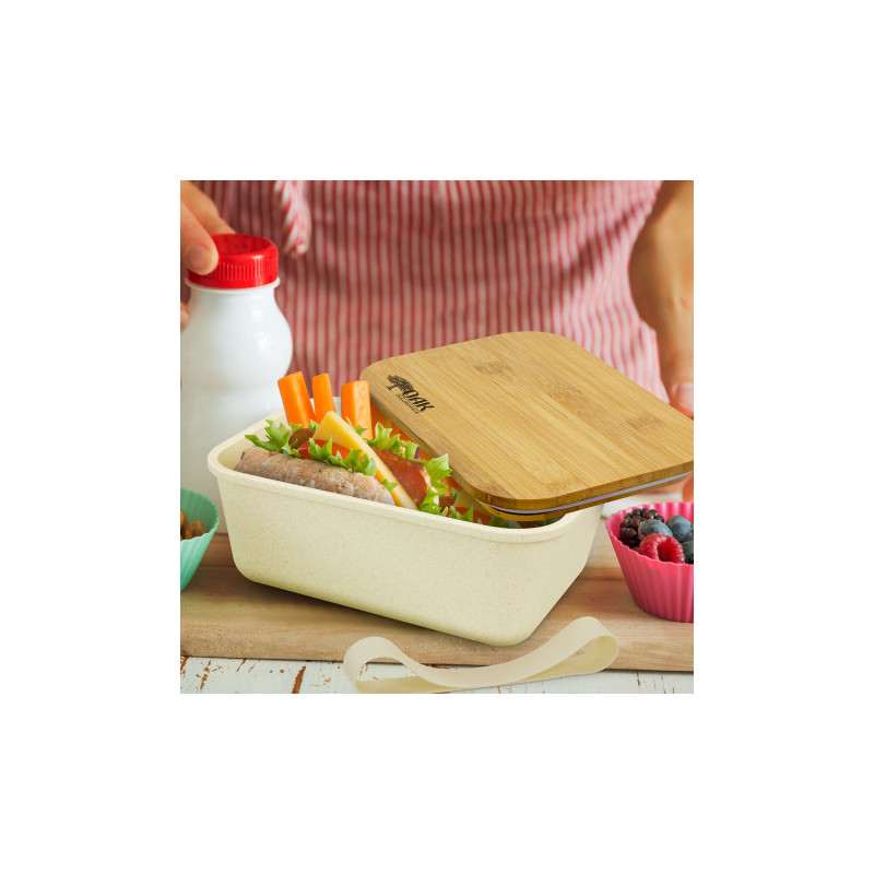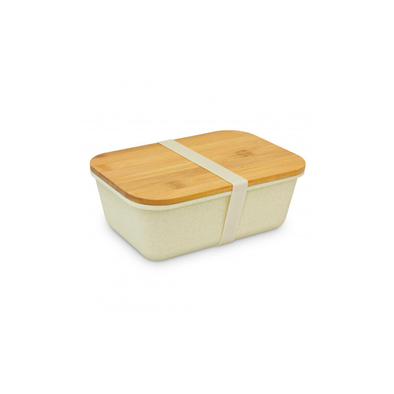 2 tier, lunch box with knife, fork and spoon retained in the middle compartment. Made from a 50% blend of wheat fibre and BPA free polypropylene. 2 compartments allows you to separate your meal. Elastic strap holds the compartments together. Bamboo lid great for easy food preparation. Ideal for lunch on the go. An eco friendly alternative as zero waste...