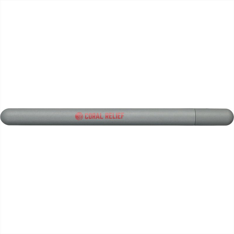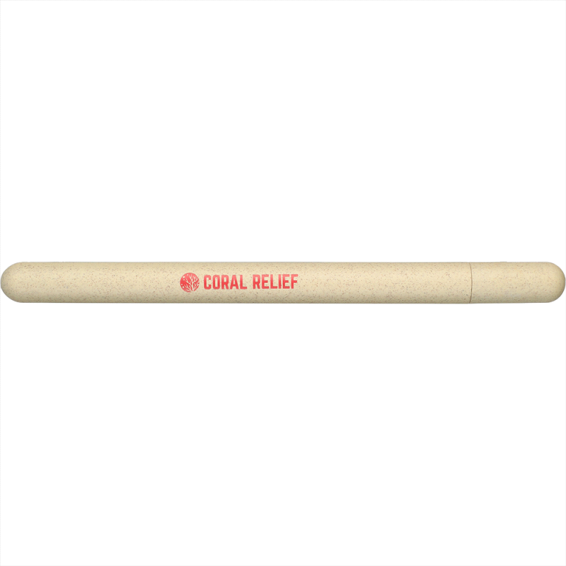 3 piece cutlery set with push on lid. Includes full size fork, knife and spoon. Made from a 50/50 blend of wheat fibre and BPA free polypropylene. This item is durable and eco friendly as a practical alternative to single use plastic cutlery. For logo longevity hand washing is recommended. Eco Credentials: Wheat fibre - by product, reusable, printed using...