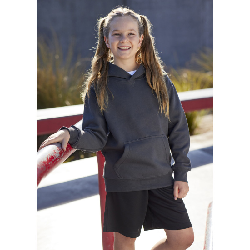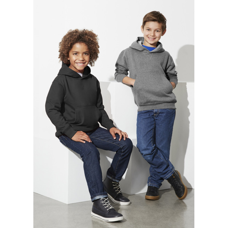 Kangaroo front pocket,Matching loose-fit hem ribbing. Fabric: 100% Polyester PerformanceFleece,245 GSM.