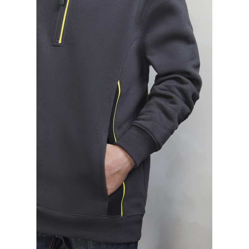 Contrast shoulder panels and piping,Full front zipper with kangaroo pocket,Matching modern loose-fit hem ribbing. Fabric: 100% Polyester Fleece,245 GSM.