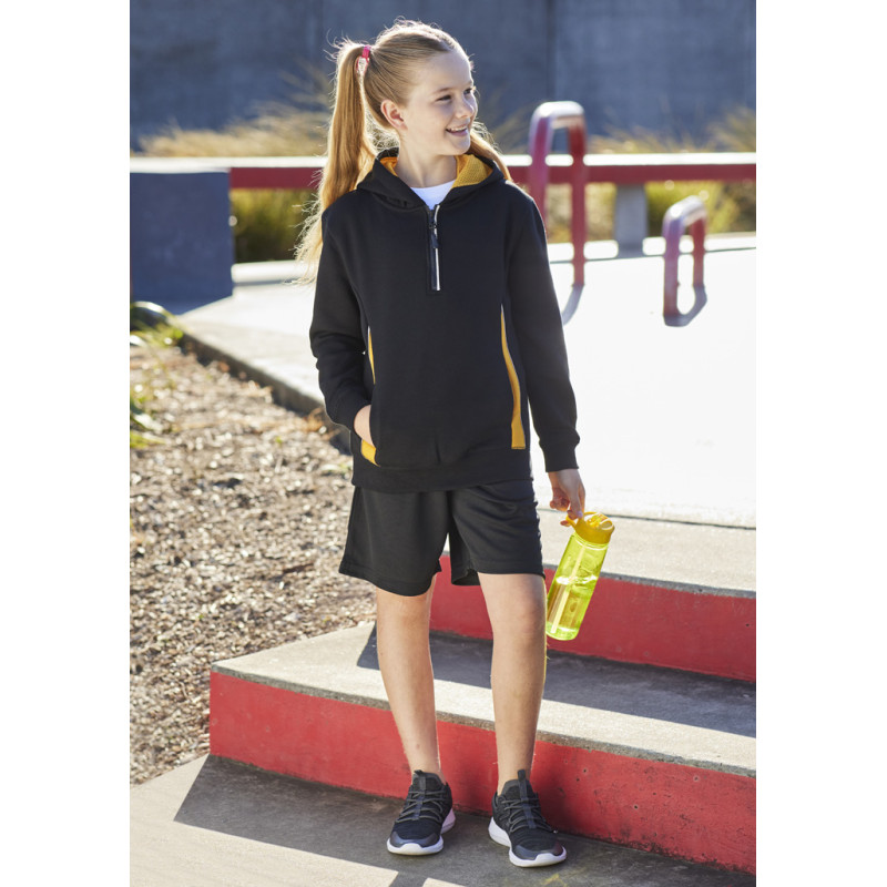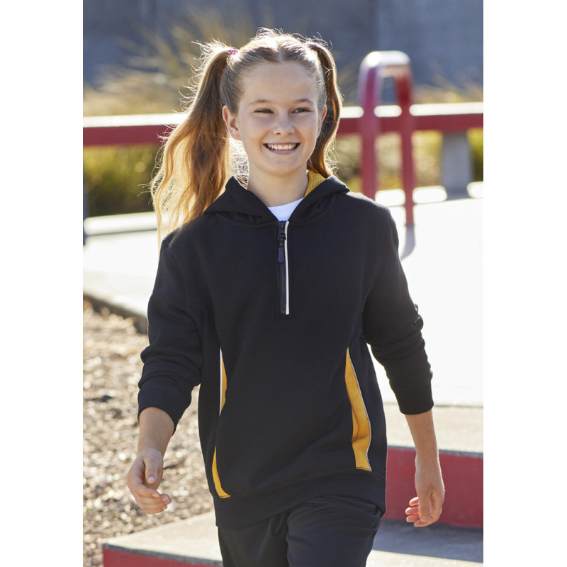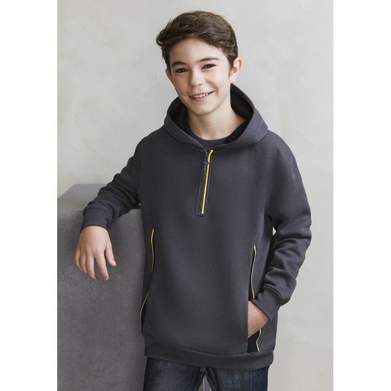 Contrast shoulder panels and piping,Full front zipper with kangaroo pocket,Matching modern loose-fit hem ribbing,No drawstring in hood - keeping kids safe. Fabric: 100% Polyester Fleece,245 GSM.
