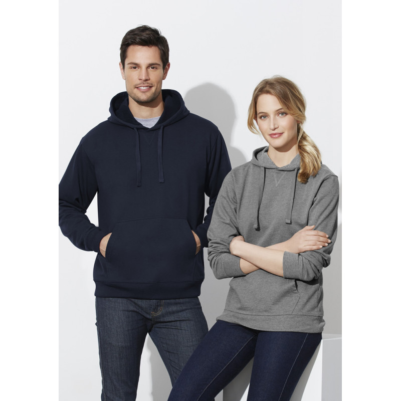 Fashionable hooded sweatshirt for men made of warm and soft cotton-polyester-blend with a modern and sporty design, kangaroo pocket, wide rib cuffs and wide draw cord. Brushed inside for extra comfort and warmth. Fabric: 80% ring-spun cotton, 20% polyester|(GYH: 70% cotton, 30% polyester)|Weight: 280 g/m²|Fit: Normal Fit|Sizes: S-2XL|Care Instructions:...