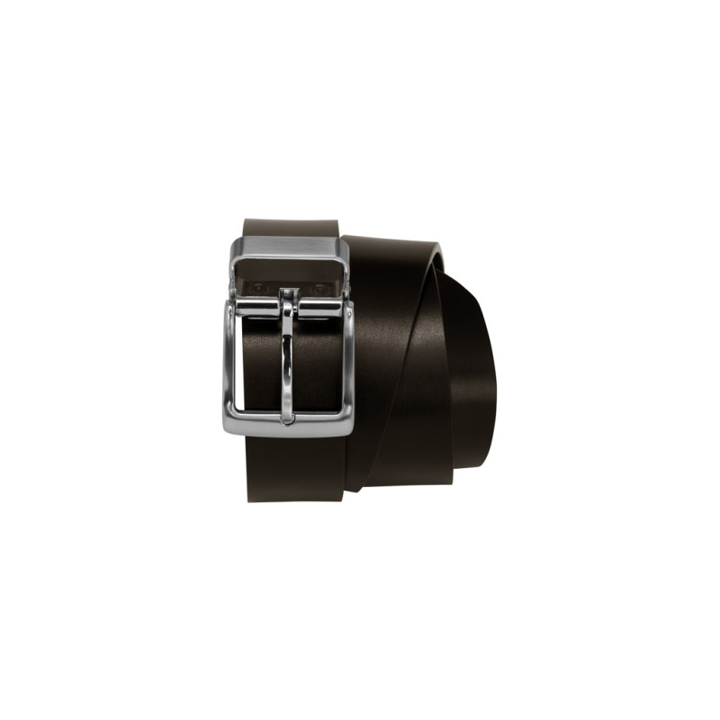 Silver satin finish buckle can be laser engraved with your logo,Reversible buckle - belt can be worn Black or Brown side up,Detachable buckle allows belt to be cut to perfect length. Fabric: PU Contemporary design belt - cut to size.