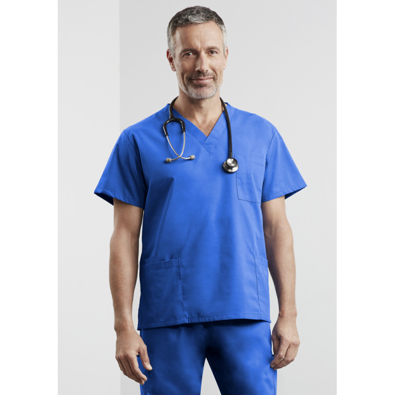 Traditional V-neck,Lower front pockets with functional concealed inner pockets,Mens style features left chest pocket. Fabric: 65% Polyester, 35% Cotton,High performance soft touch fabric,Natural stretch fabric for added comfort,Laundry friendly - can be laundered to hygienic 80C,155 GSM.