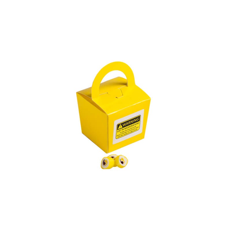 Minimum Order Quantities for 100g Personalised Rock Candy Packed in Coloured Noodle Boxes