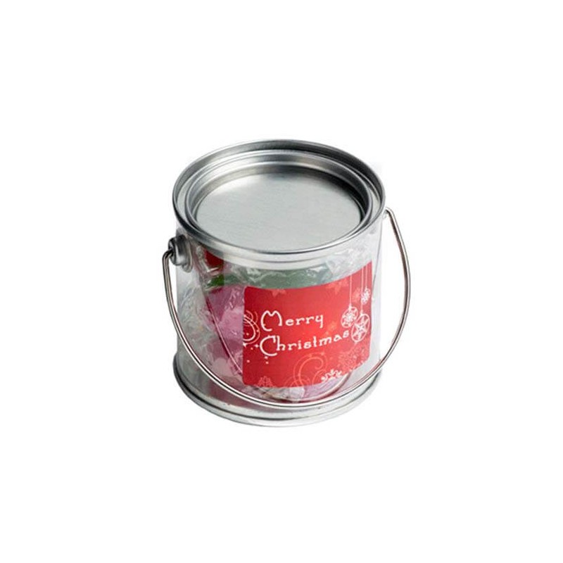 Minimum Order Quantities for 120g Christmas Twist Wrapped Boiled Lollies Packed in Small PVC Buckets