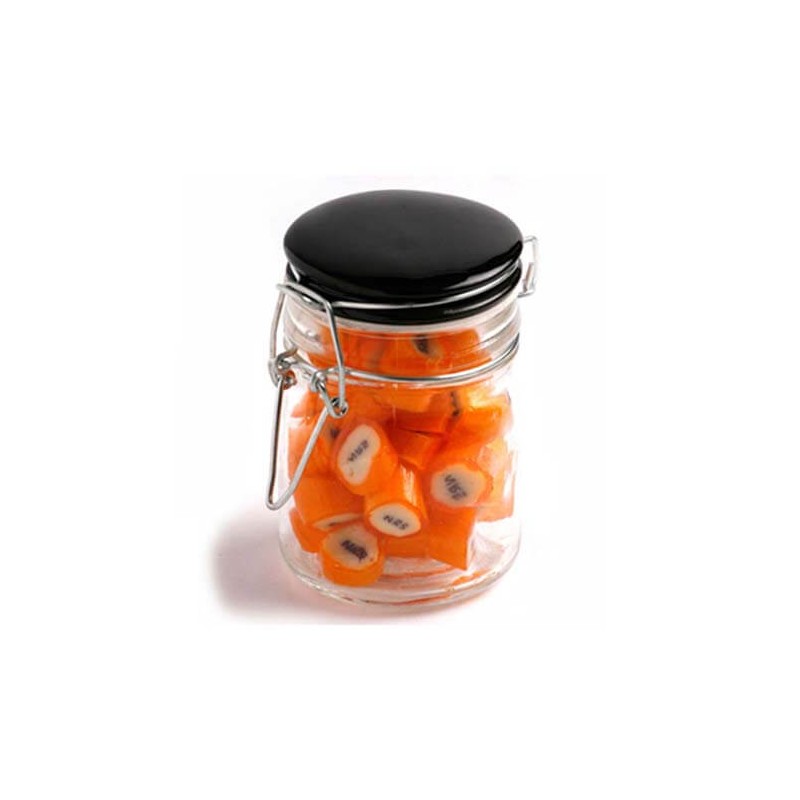 Glass Clip Lock Jar Filled With 80G Corporate Coloured Humbugs