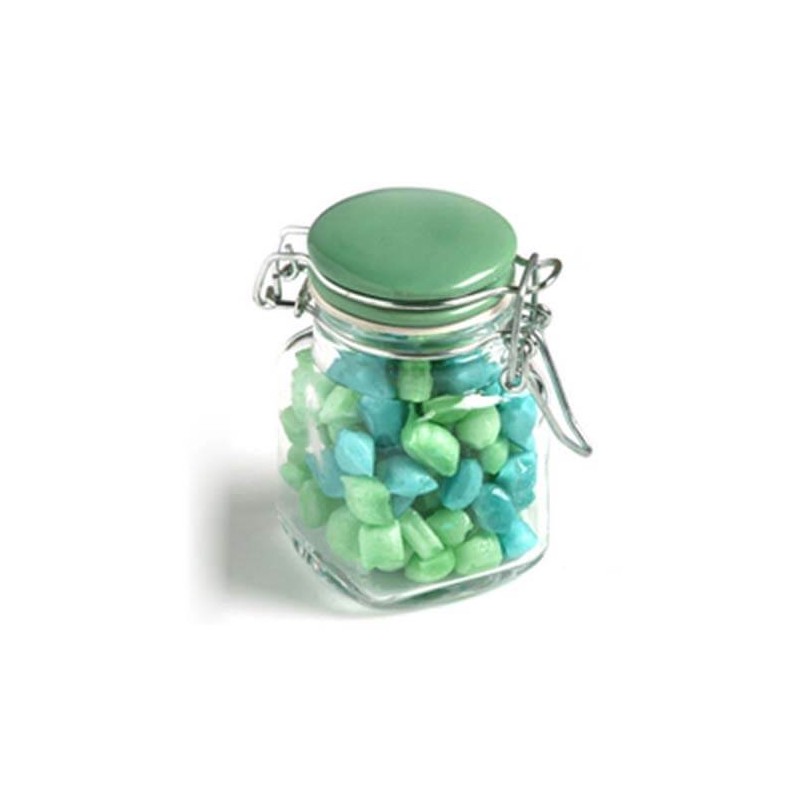 Small Square GlassJar Filled With Corporate Coloured Humbugs 90G