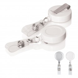 The office companion. Blue badge holder with metal carabineer hook and retractable cord.