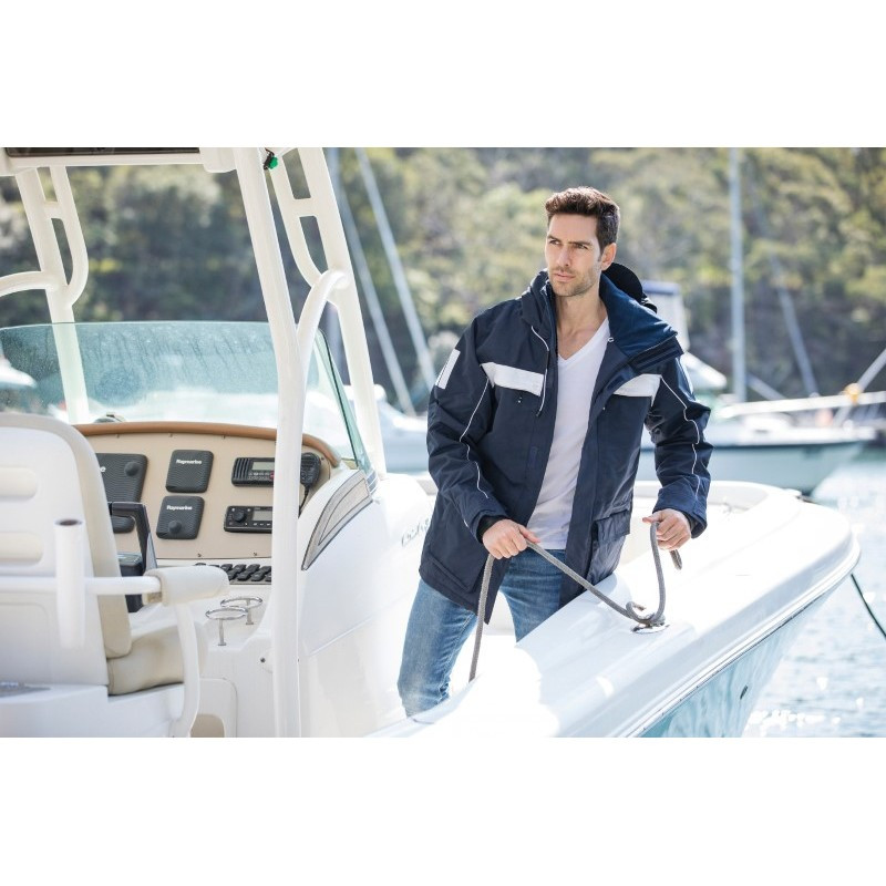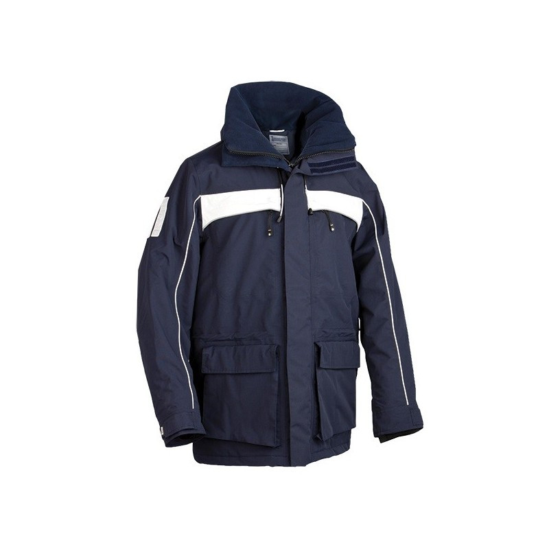 Unisex waterproof and breathable parka with practical pockets at front and inside jacket. A two way zipper at front makes it easier to sit down. Adjustable drawstring at bottom hem and hood. Zipper at bottom sleeve with ribbed cuff inside. Quilted inside lining can be opened for ease of decoration. Adjustable drawstring at bottom hem and hood.|Zipper at...