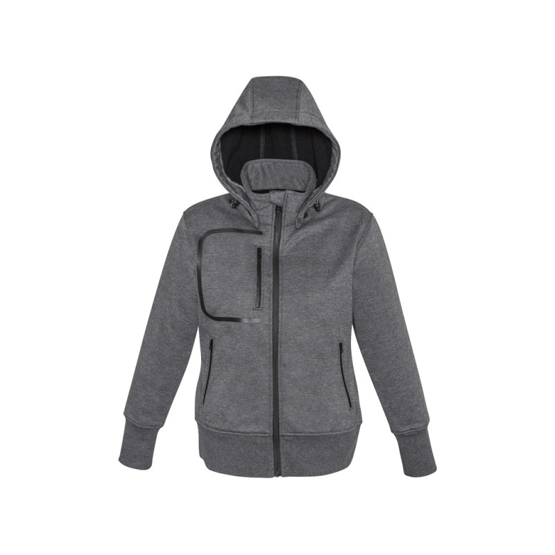 Ladies’ fully lined, water repellent, soft shell jacket with waterproof and breathable membrane. Elastic drawstring at bottom hem and top of collar.|Fleece inside collar.|Two zipped inner pockets, one with cord opening.|The lining can be opened to make printing and embroidery easier. |Shell 96% polyester 4% spandex. |Shell inside: 100% polyester. |Lining:...