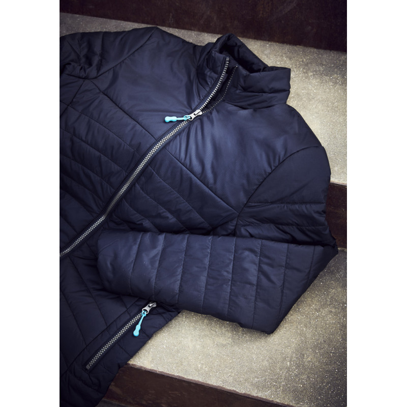 Premium 340gsm women’s long sleeve jacket manufactured from 94 percent polyester with six percent elastane added for stretch comfort. This layer is windproof, breathable, and has a waterproof rating of 8000mm (waterproof in light conditions). It has 160gsm internal polyester padding and is lined with polyester taffeta which provides triple-layer...