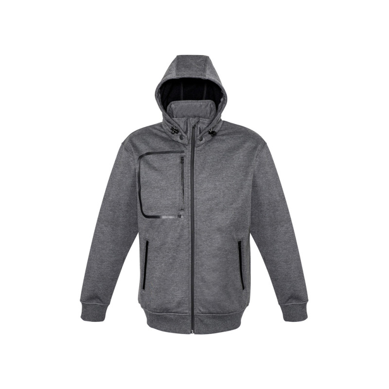 Men’s hybrid jacket of wind and water repellent softshell and heat-quilted interlock with high breathability. Softshell panels form the sleeves, shoulders and hood. Body of heat-quilted interlock with micro fleece lining. Adjustable hood opening, elasticated waistband and Velcro® adjustable cuffs. Three zipped pockets at front with extra ventilation and a...