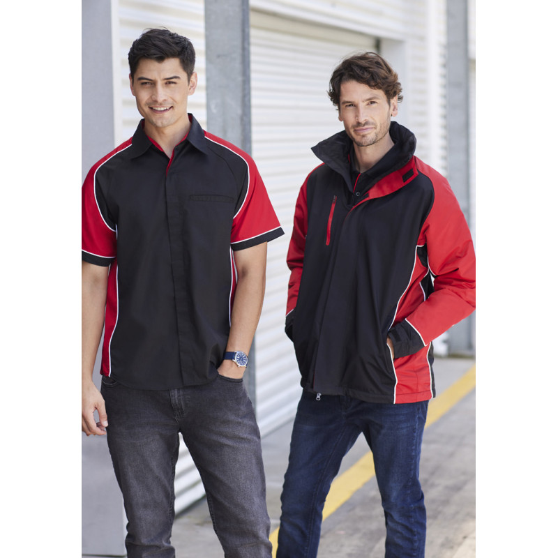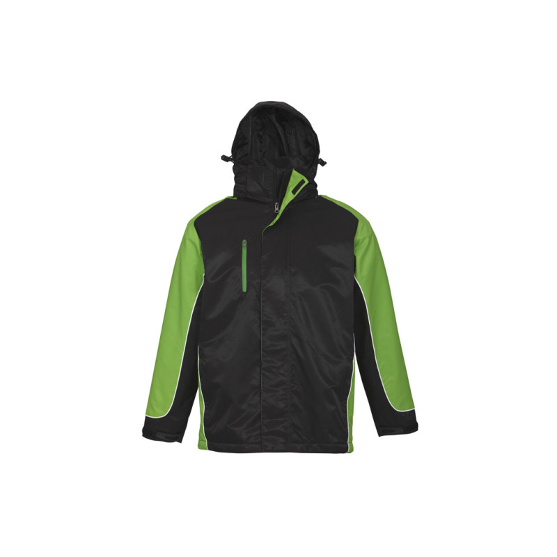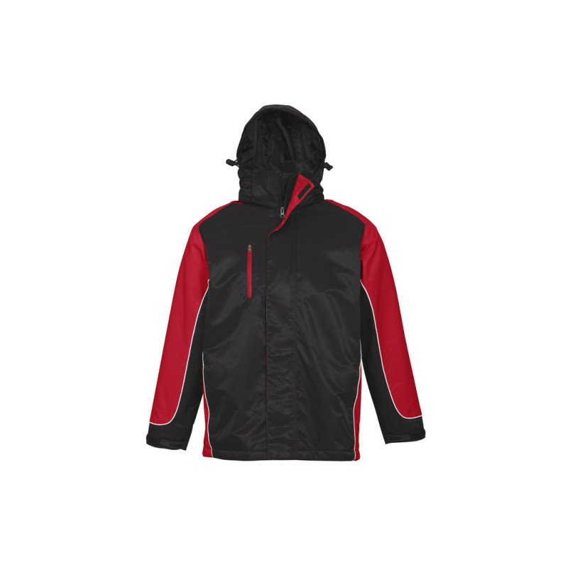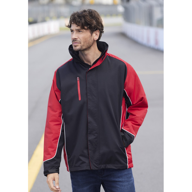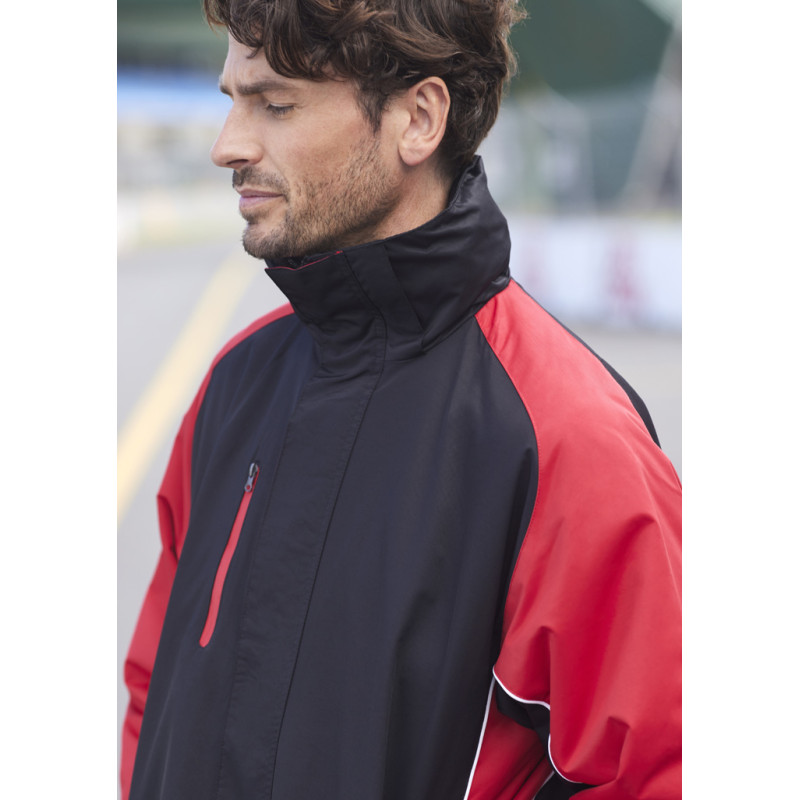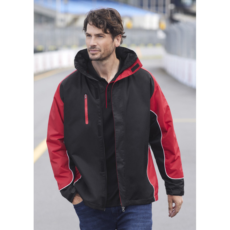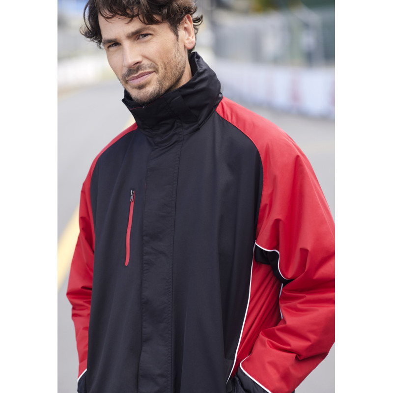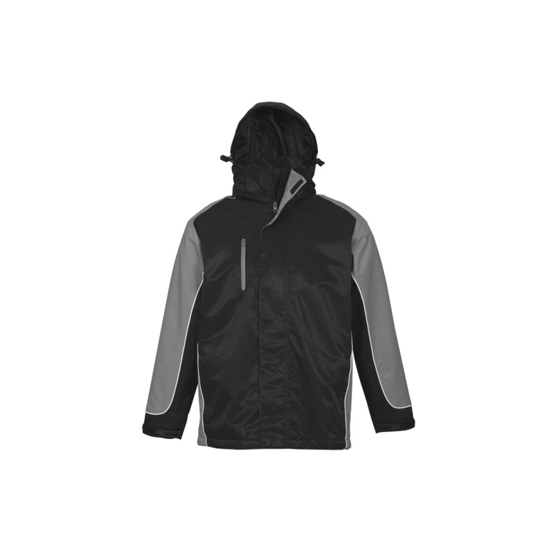 Mens functional wind and waterproof jacket with taped seams and waterproof zippers. Detachable hood, adjustable drawstring at bottom hem and hood, as well as Velcro® adjustable cuffs. Outside chest pocket and inside chest pocket. Zipper opening at back and hood lining for ease of decoration. Detachable hood, adjustable drawstring at bottom hem and hood,...
