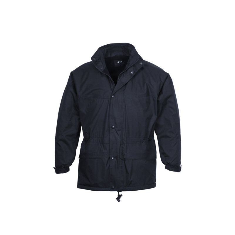 Unisex waterproof and breathable parka with practical pockets at front and inside jacket. A two way zipper at front makes it easier to sit down. Adjustable drawstring at bottom hem and hood. Zipper at bottom sleeve with ribbed cuff inside. Quilted inside lining can be opened for ease of decoration. Adjustable drawstring at bottom hem and hood.|Zipper at...