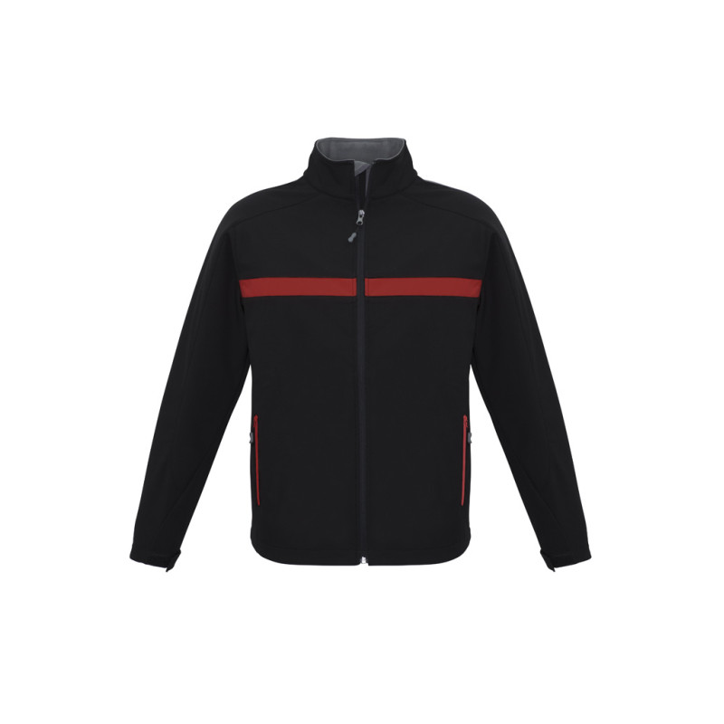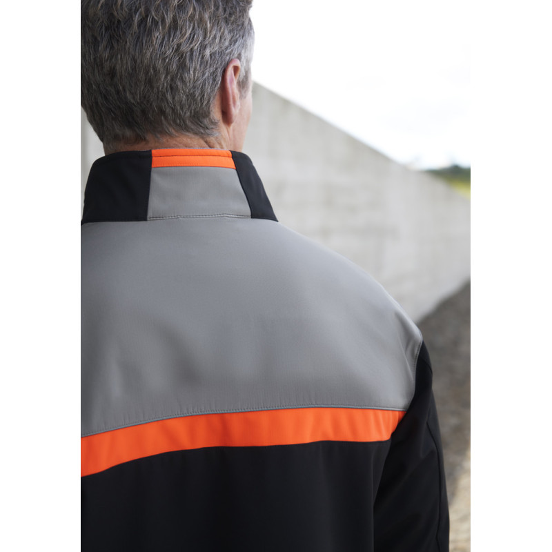 Men’s durable wind and water resistant knitted softshell jacket with good breathability. The jacket is plated with fleece (doubleface) and features inverted panels at sleeves, sides and collar. Fully zipped front and two zip pockets.|Neck tape in contrast colour.|Elastic edging at bottom hem and sleeve cuffs. |100% polyester, piqué knitted softshell, 330...