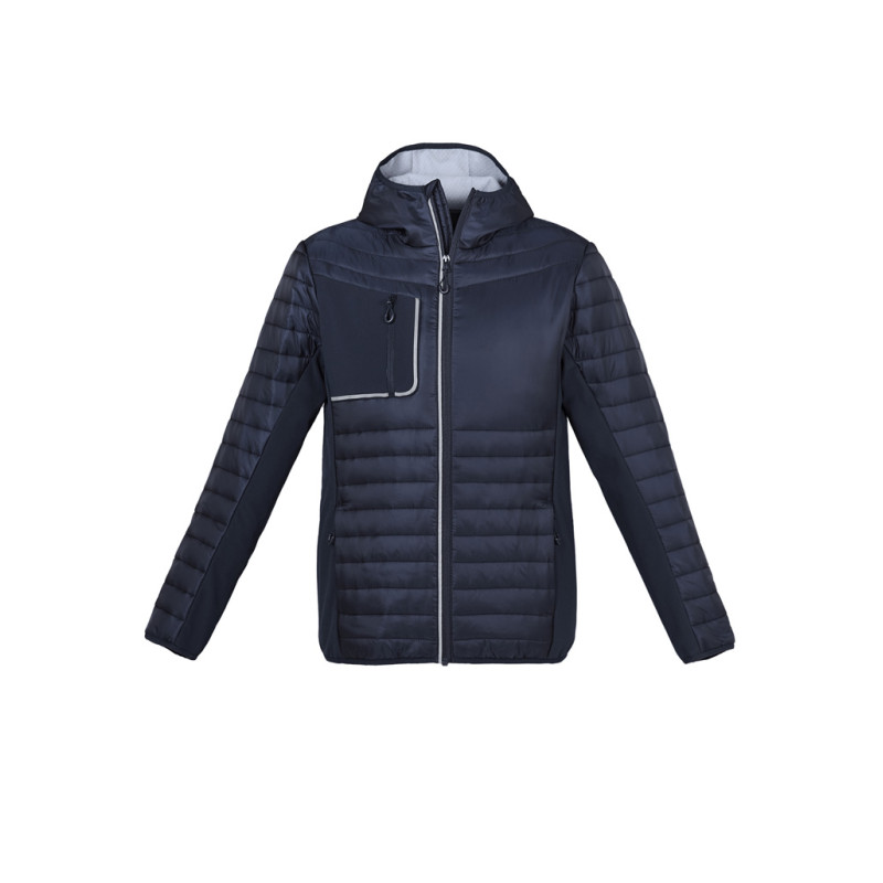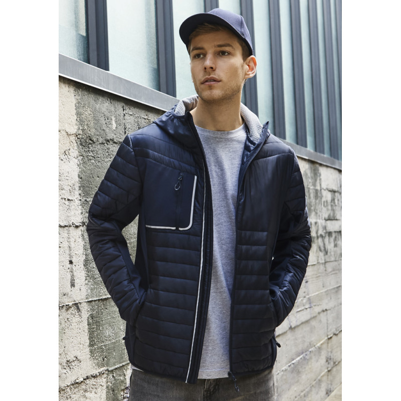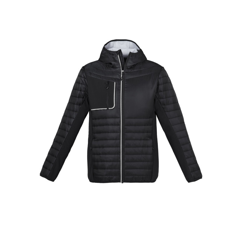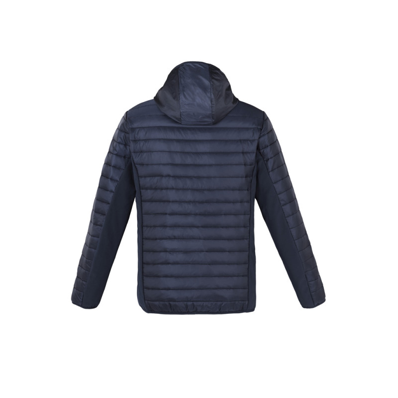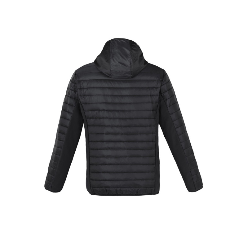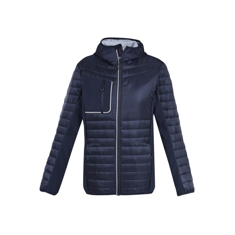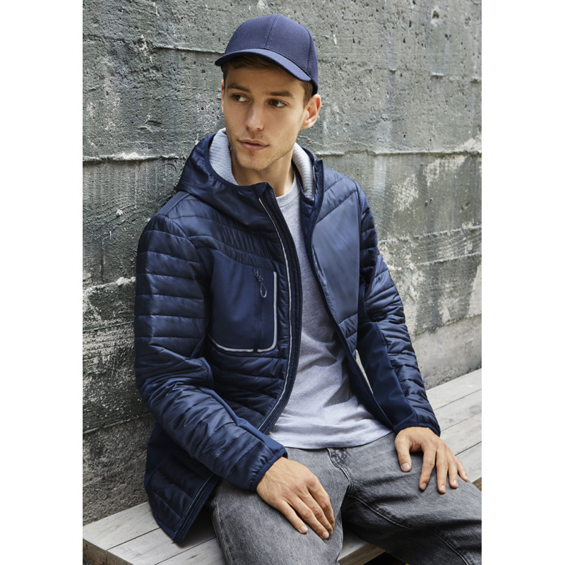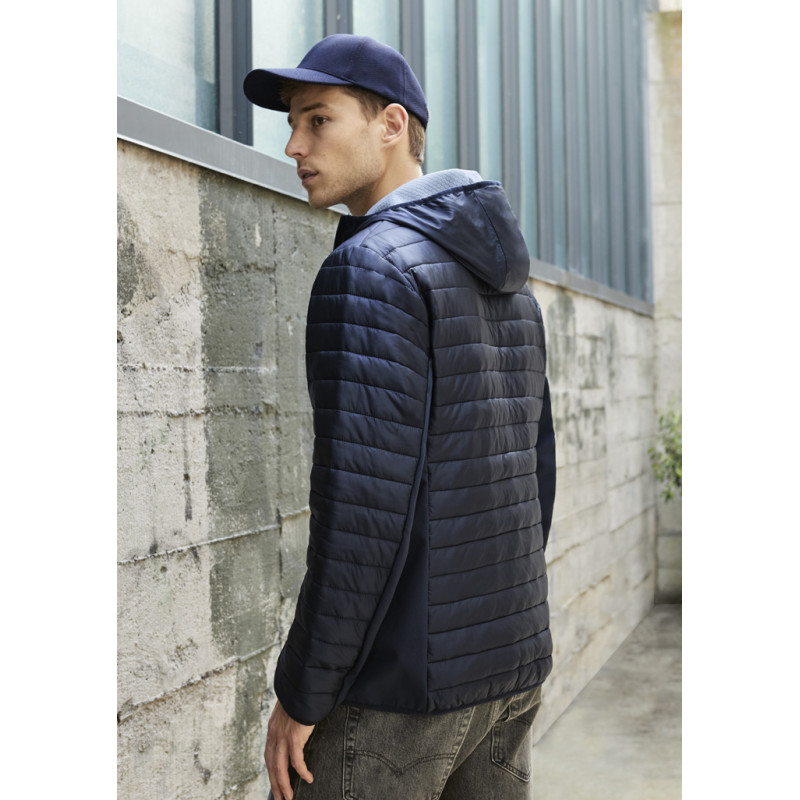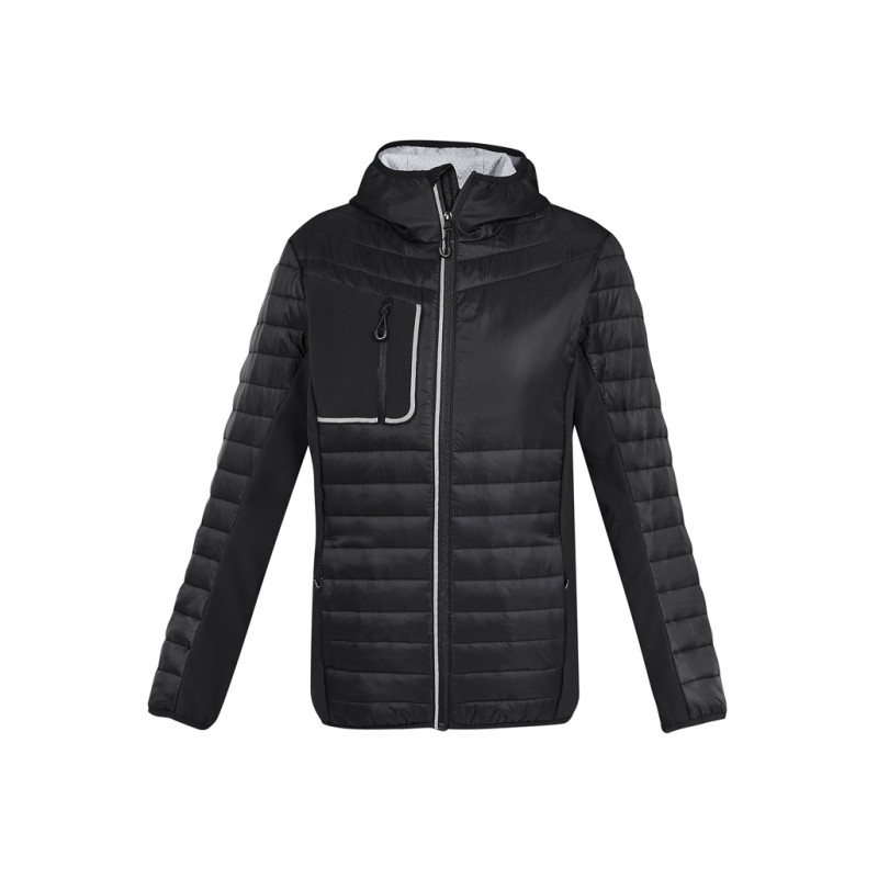 Men’s hybrid jacket of wind and water repellent softshell and heat-quilted interlock with high breathability. Softshell panels form the sleeves, shoulders and hood. Body of heat-quilted interlock with micro fleece lining. Adjustable hood opening, elasticated waistband and Velcro® adjustable cuffs. Three zipped pockets at front with extra ventilation and a...