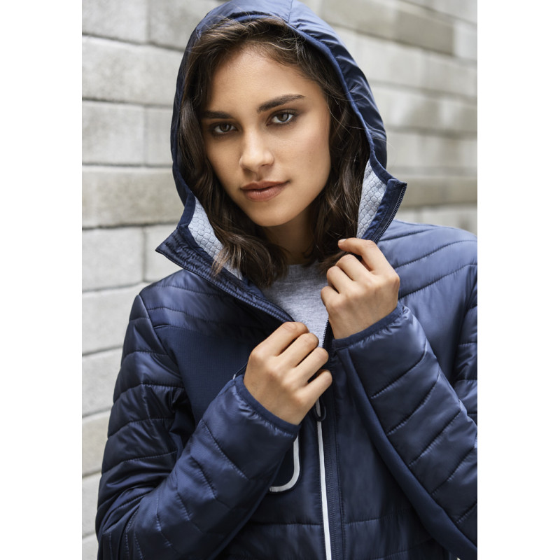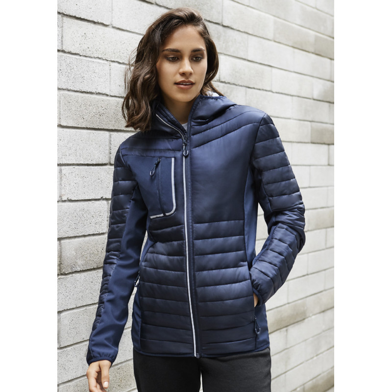 Premium 340gsm women’s long sleeve jacket manufactured from 94 percent polyester with six percent elastane added for stretch comfort. This layer is windproof, breathable, and has a waterproof rating of 8000mm (waterproof in light conditions). It has 160gsm internal polyester padding and is lined with polyester taffeta which provides triple-layer...