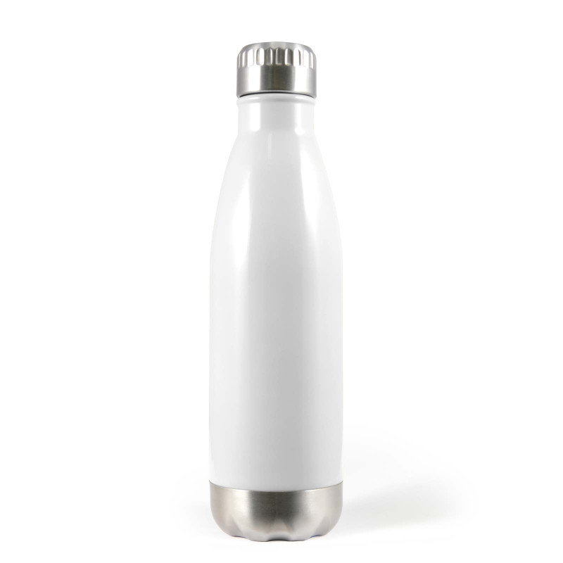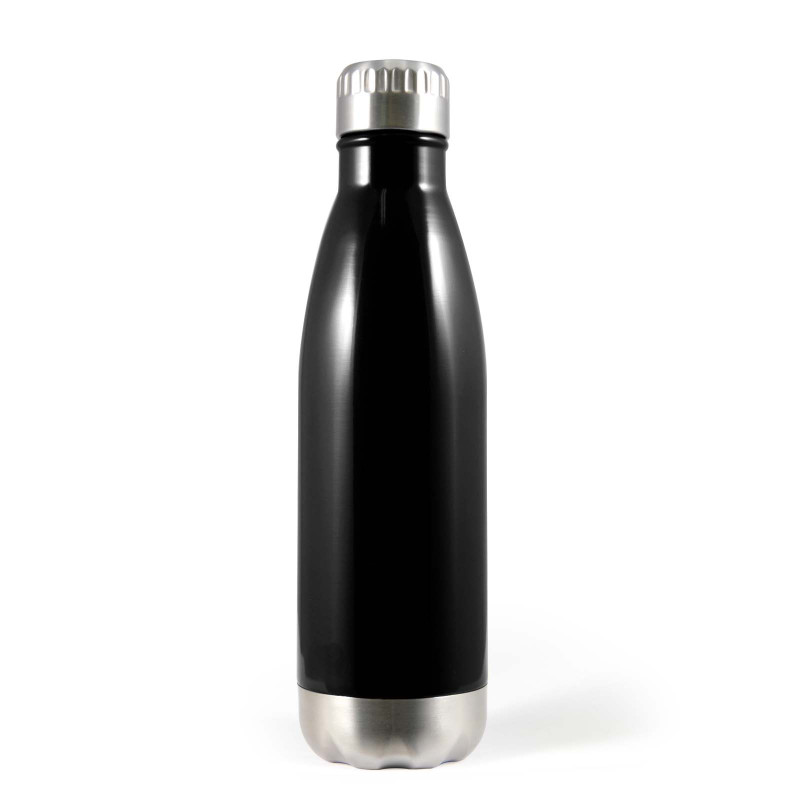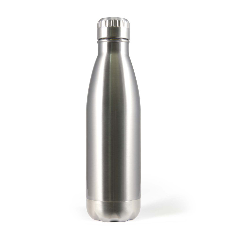 Elegant 500ml double wall stainless steel vacuum bottle with soft feel rubberised coating. Leak free secure screw cap lid. Made from BPA free material. Shatter, odour and stain resistant. This drink bottle is suitable for keeping drinks cold for up to 24 hours and hot up to 12 hours. Not suitable for carbonated liquids or for freezing. For logo longevity...