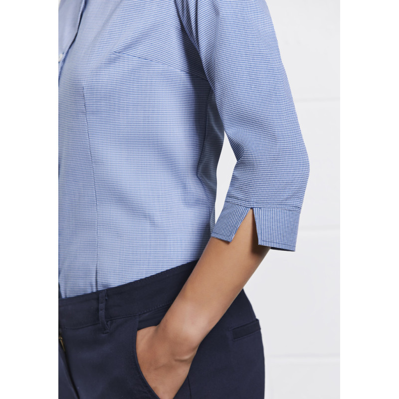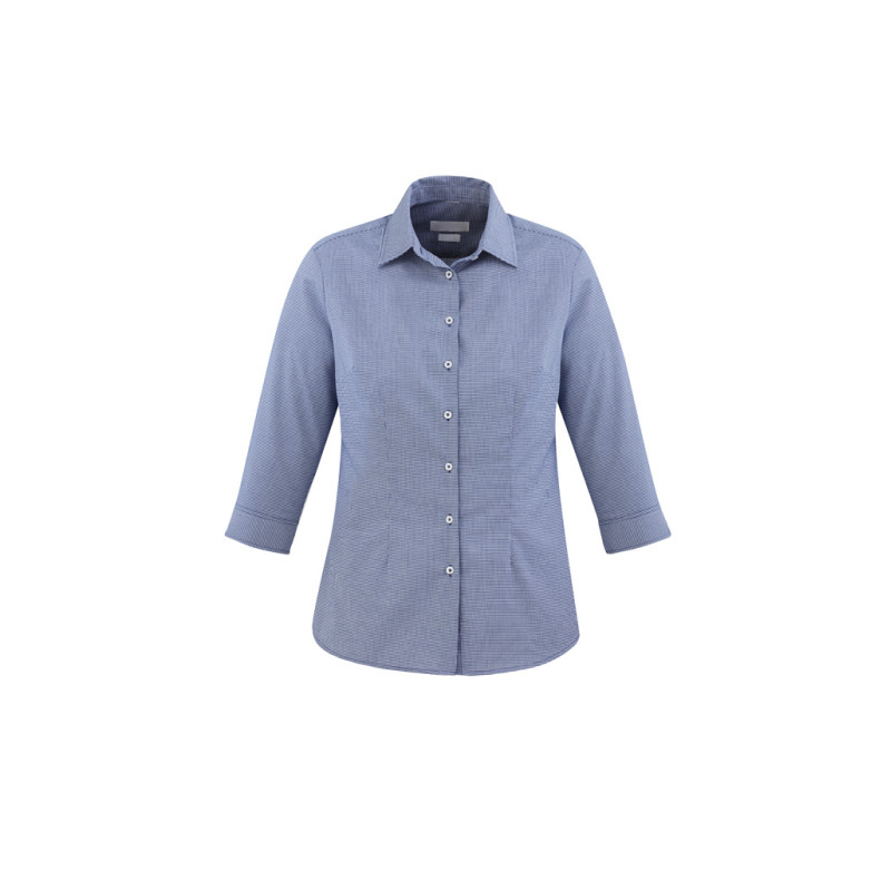 Cuff detail with buttons,Waist and bust darts for shape,Available in Blue or White. Fabric: 100% Cotton Mini Herringbone fabric,Easy iron wrinkle free liquid treated fabric.