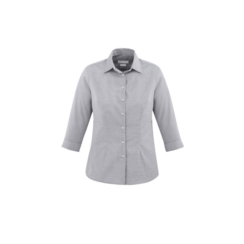 Feminine waist and bust darts for a shaped silhouette,Standard slim collar and pocket,Curved hem can be worn in or out. Fabric: Easy Care 65% Polyester, 35% Cotton,Yarn dyed, Prince Of Wales check fabric,UPF rating - Very Good.