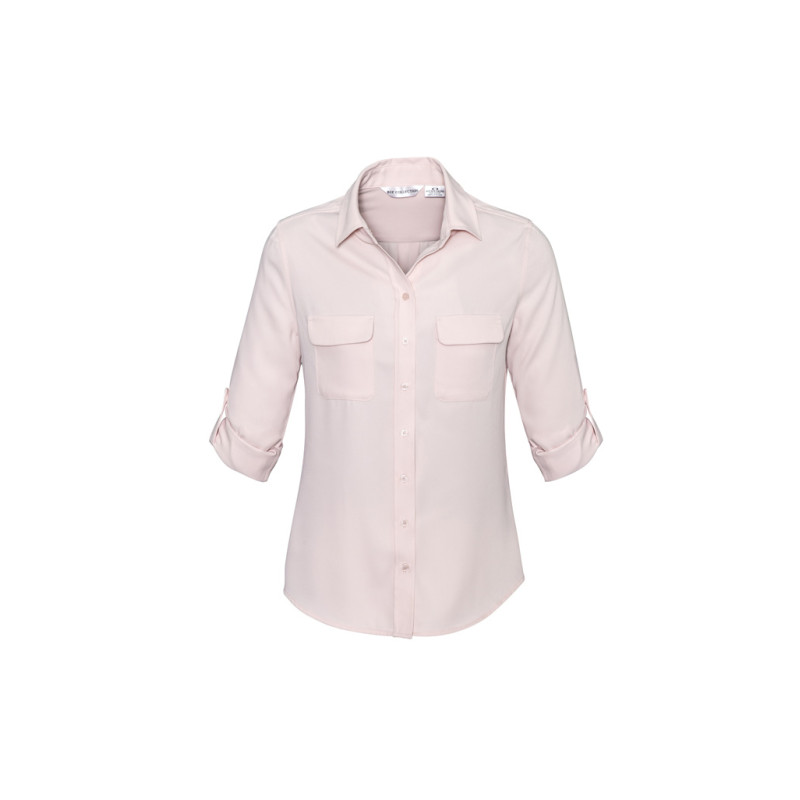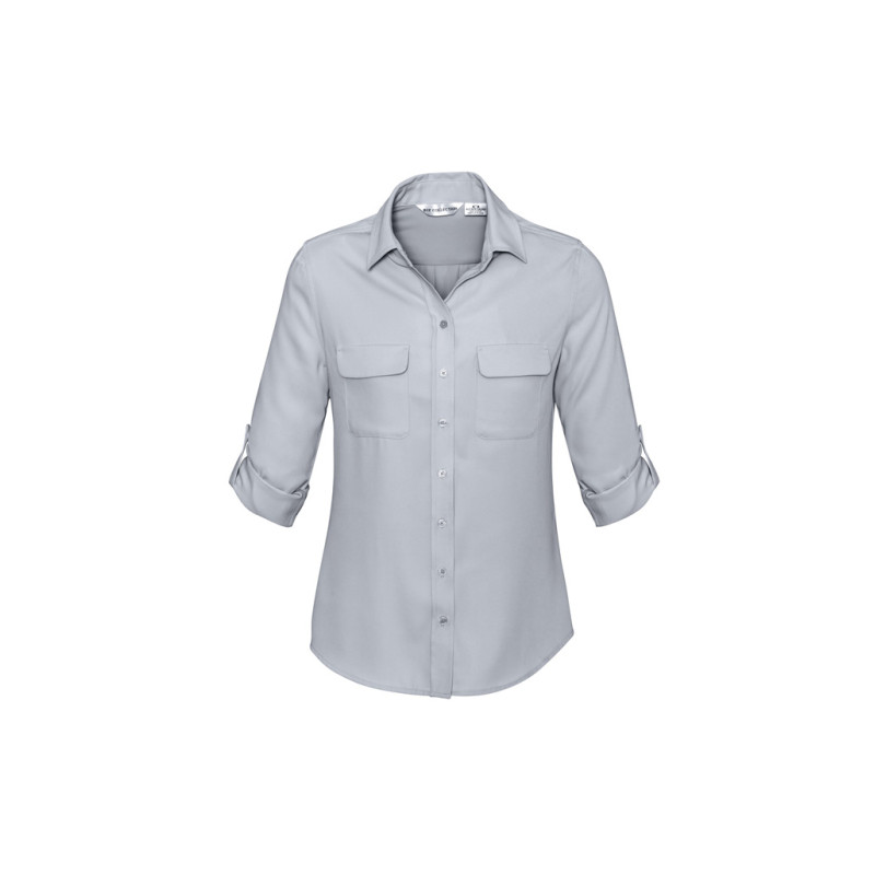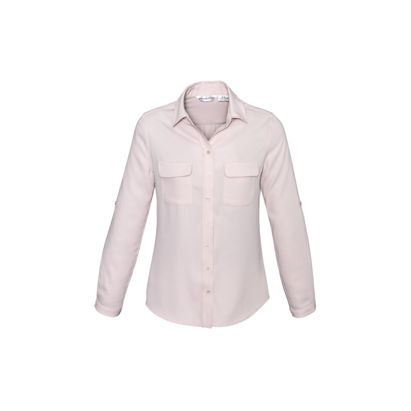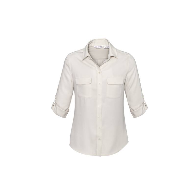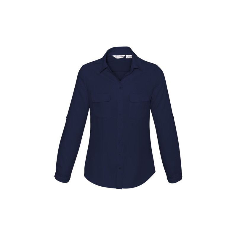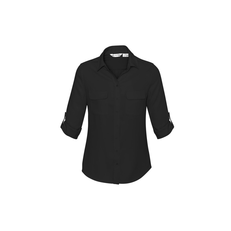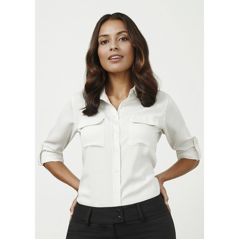 Finely stitched Boatneck detail,Sleeves have a versatile roll-up tab function,Longer length with shirt-tail hem designed to be worn out or tucked in,Gently shaped through the torso for a streamlined silhouette. Fabric: 100% Polyester Mechanical Stretch fabric,Wrinkle resistant, fuss free fabric with flattering drape.