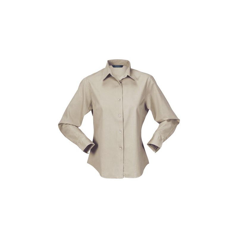 Garment washed for added softness and easy minimal ironing,Ladies style features semi-fitted silhouette, with shirt tail hem and back box pleat,Can be worn tucked in or out. Fabric: 60% Cotton, 40% Polyester,Pre-shrunk plain oxford weave fabric.
