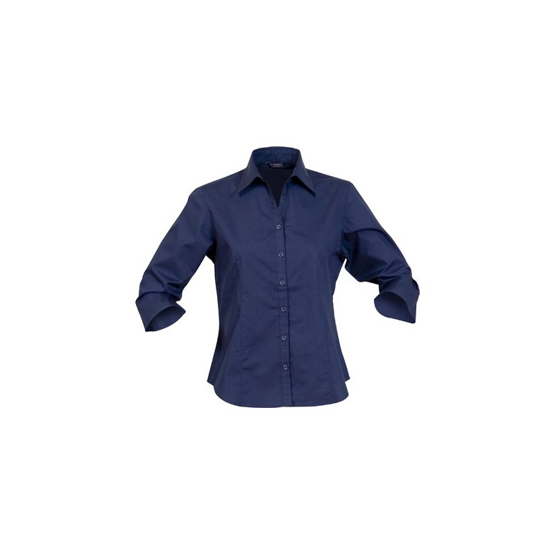 French style Y-neckline, turn back cuff design and twin back pleats,Waist and bust darts for elegant fit,Longer length with curved hem can be worn in or out. Fabric: Cotton-Rich 68% Cotton, 28% Polyester, 4% Elastane,Built in stretch for superior comfort,UPF rating - Very Good.