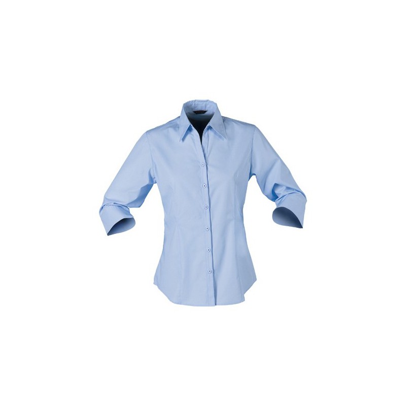 Cuff detail with buttons,Waist and bust darts for shape,Available in Blue or White. Fabric: 100% Cotton Mini Herringbone fabric,Easy iron wrinkle free liquid ammonia treated fabric.