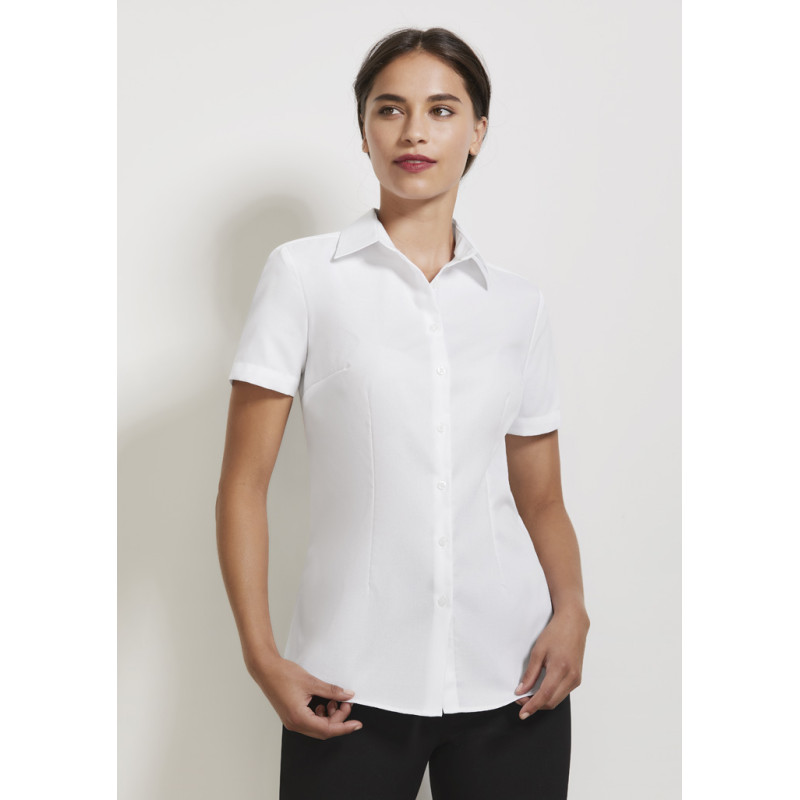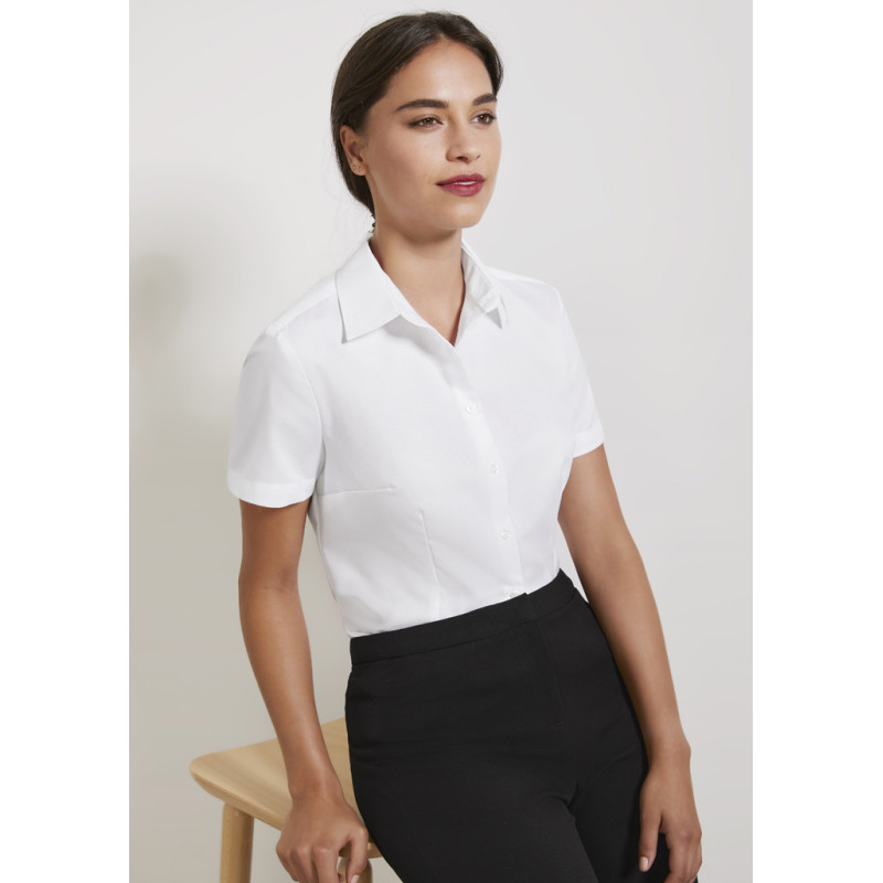 Designed to work.The Madison short sleeve blouse is big on features and low on maintenance. Incorporating a secret button to prevent gaping, a built in action back pleat and functional, easy care fabric.,Its the perfect choice for practical, everyday comfort. Fabric: 100% Mechanical Stretch Polyester.