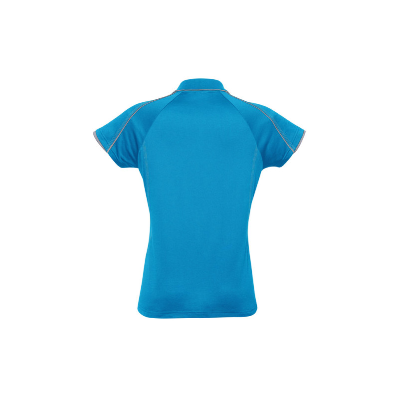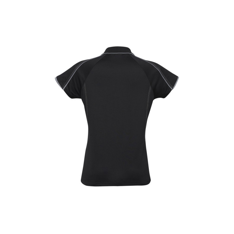 Matching knitted collar,Durable flat lock raglan armhole,Slimline placket. Fabric: BIZ COOL 100% Breathable Polyester,New generation mesh,145 GSM,UPF 50+.