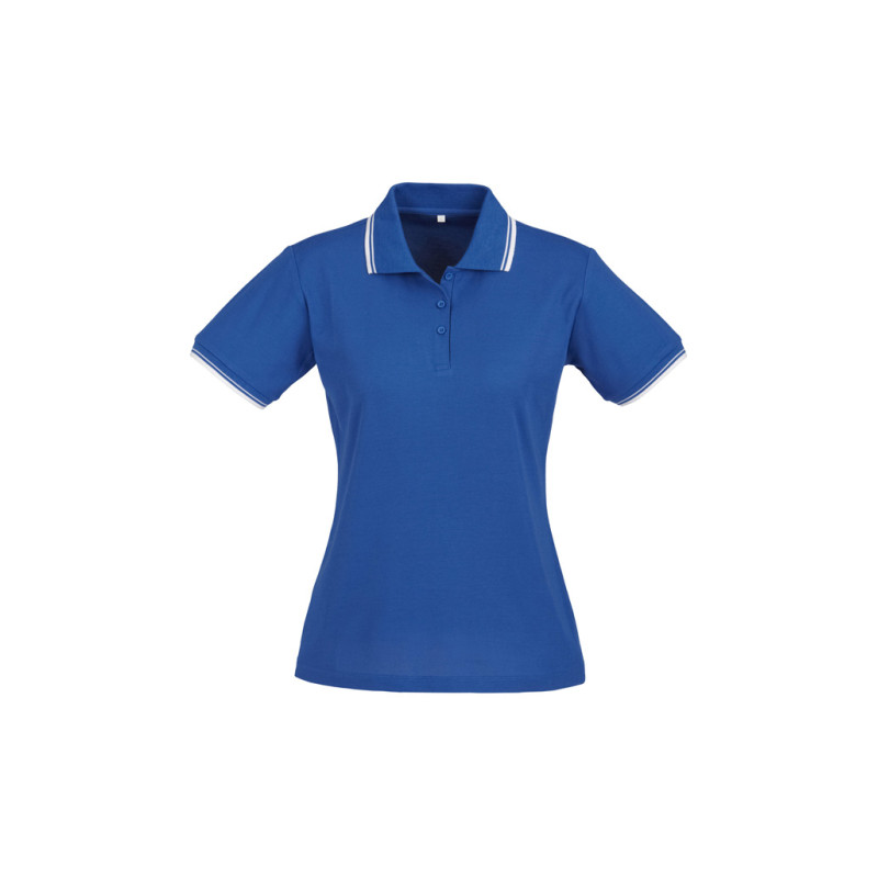 Ladies pique polo with three matching buttons at front placket. Neck tape, side slits and cuff at bottom sleeves. |Product Material: 60% cotton, 40% polyester, 200 g/m2|Modern/Slim Fit