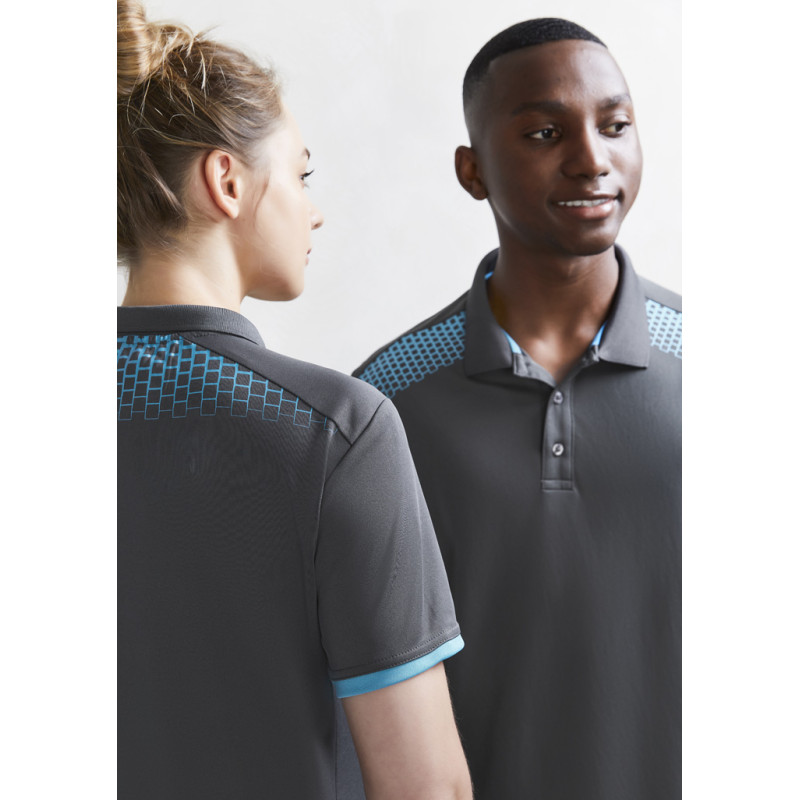 Honeycomb weave with stretch elastane delivers style and comfort,Flat knitted collar with contrast button placket,Side panels with dynamic contrast piping,Unique print features on torso, sleeve and back neck to accent your logo,Longer length for added coverage when moving,Mens style includes loose pocket. Fabric: 97% Polyester, 3% Elastane,180 GSM,BIZ...