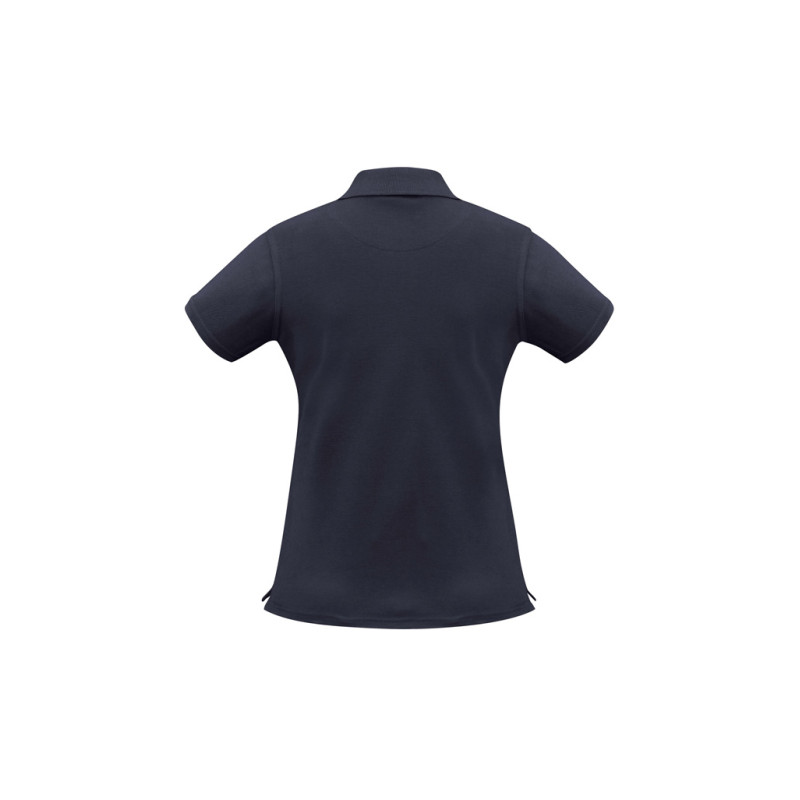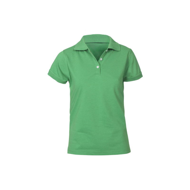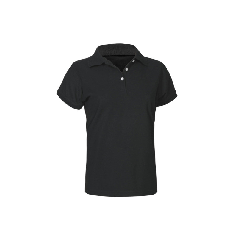 Luxe feel Cotton-rich jersey fabric feels cool and comfortable,Ladies style has a neat collar and flattering open neckline. Fabric: 75% Cotton, 25% Polyester, Plated Jersey,190 GSM.
