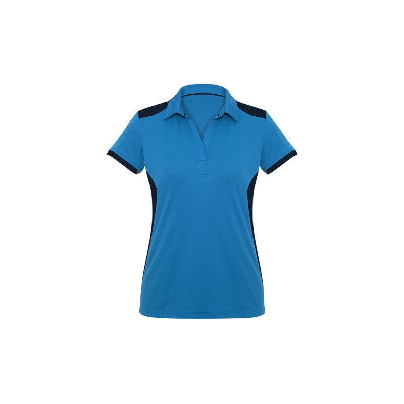 Durable top-stitched armhole and twin needle sleeve/hem,Knitted flat collar for sleek appearance,Ladies style features fashionable Y-placket design. Fabric: 65% Polyester, 35% Cotton Pique,210 GSM,UPF Rating - Light Colours UPF 30+, Dark Colours UPF 50+.