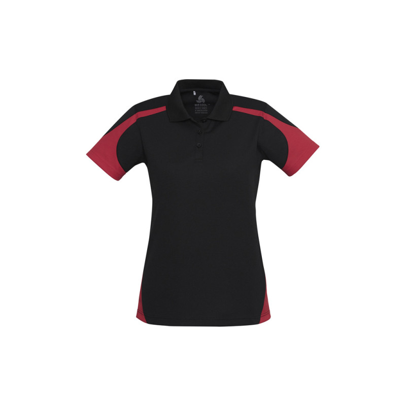 Matching knitted collar,Durable flat lock raglan armhole,Slimline placket. Fabric: BIZ COOL 100% Breathable Polyester,New generation mesh,145 GSM,UPF 50+.