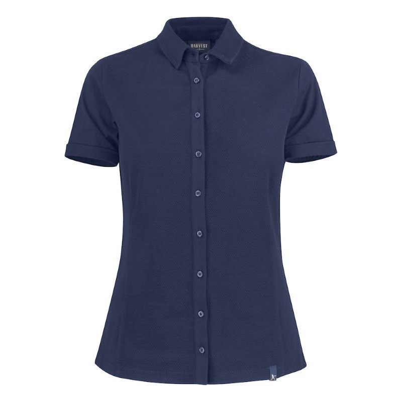 Luxe feel Cotton-rich jersey fabric feels cool and comfortable,Ladies style has a neat collar and flattering open neckline. Fabric: 75% Cotton, 25% Polyester, Plated Jersey,190 GSM.