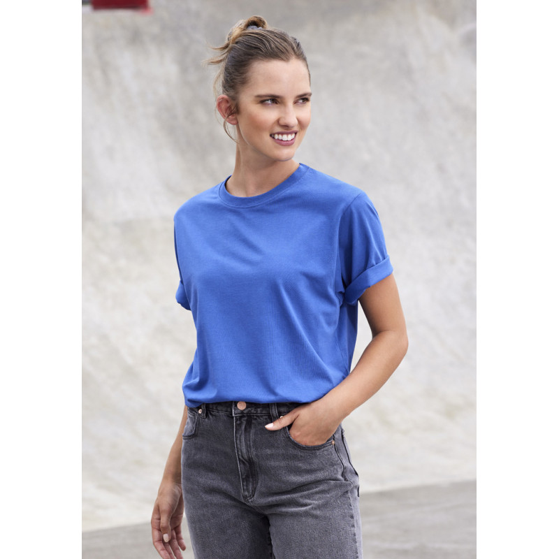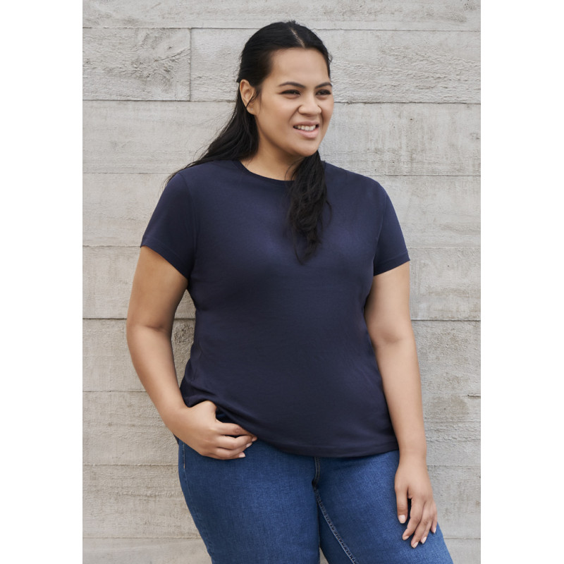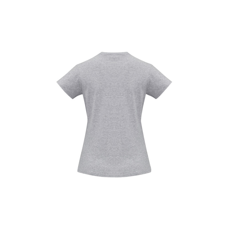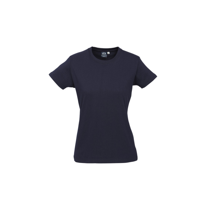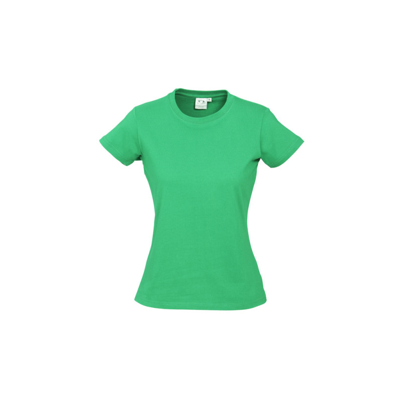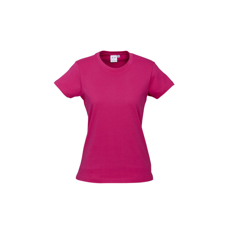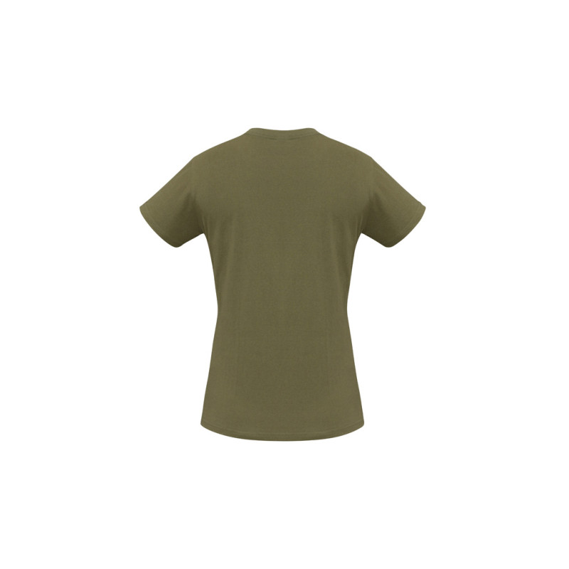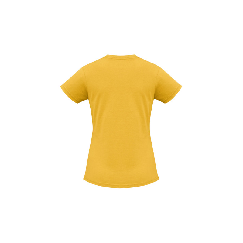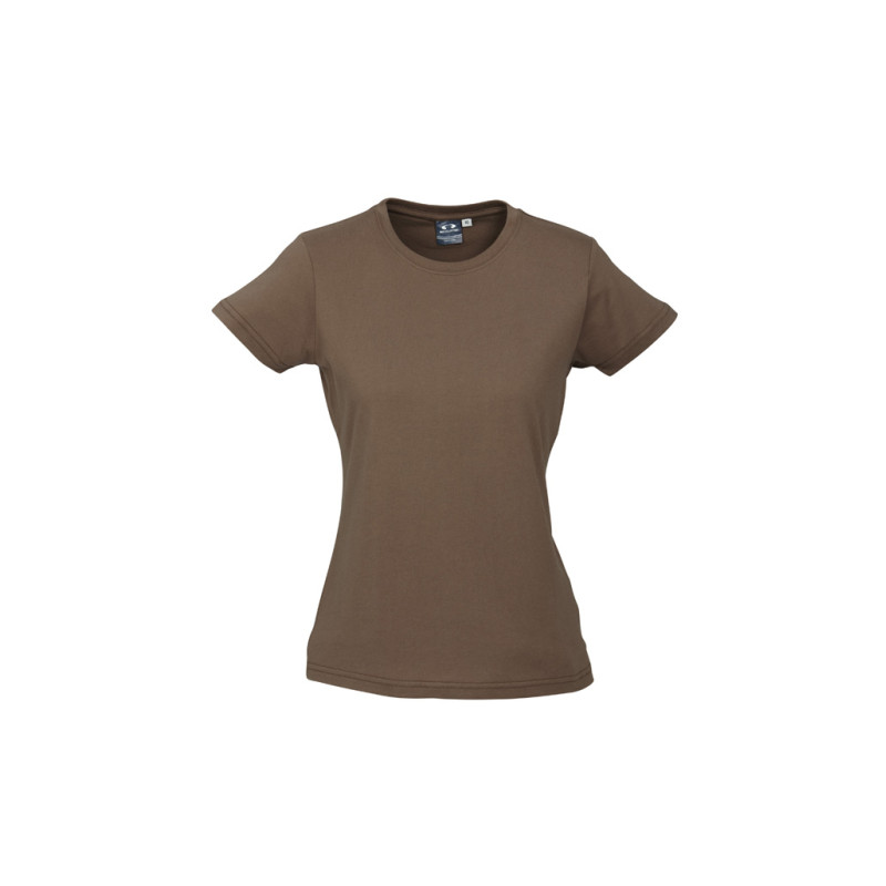 Stylish cut and sewn women’s t-shirt which features an elastane ribbed round collar with neck tape reinforcing and short sleeves. It is available in five sizes and is manufactured from 190gsm heavy jersey, semi combed ring spun cotton. This gives the garment a soft and smooth feel as well as providing an excellent branding surface.