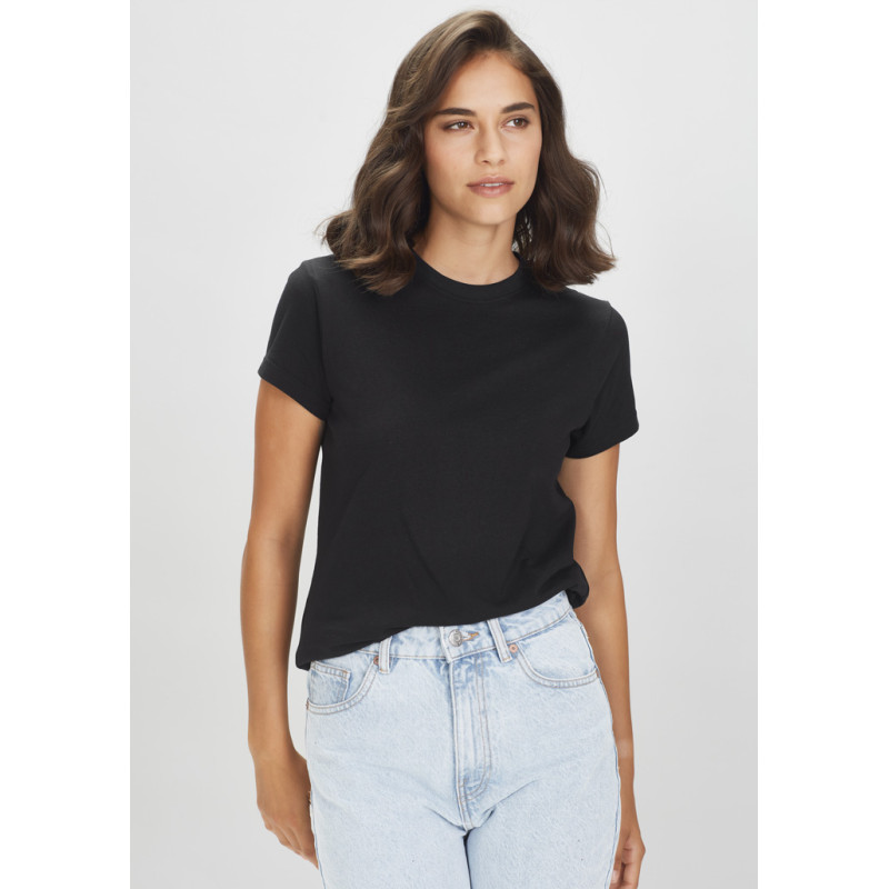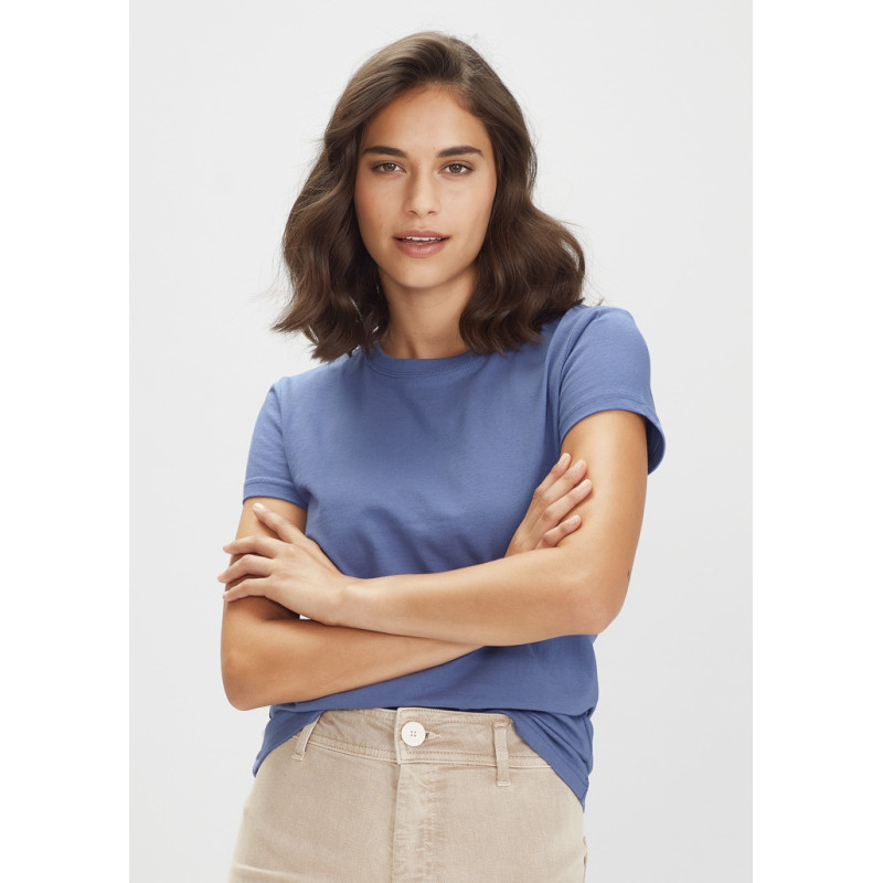 Soft combed cotton T-shirt for women with a very light feel and a fashionable rolled collar. The fine structure gives these T-shirts a premium look and high elasticity. Fabric: 100% ring-spun combed cotton; single jersey|Weight: 105 g/m²|Fit: Normal Fit|Sizes: S-XL|Care Instructions: washable at 40°C|Other Features: rolled self-fabric collar, wide neck...