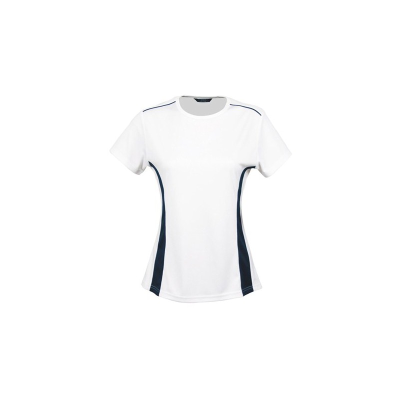 Modern and stretchy sports T-shirt for women, with contrast raglan seams made of quick-drying, breathable mesh-material. Contrast neck tape, decorative flatlock seams and excellent freedom of movement. Fabric: 100% ACTIVE-DRY polyester; sleek mesh|Weight: 140 g/m²|Fit: Normal Fit|Sizes: S-XL|Other Features: sleek surface, stretchy fabric, contrast raglan...