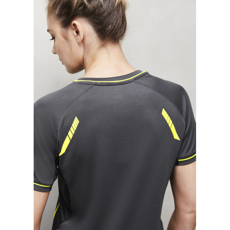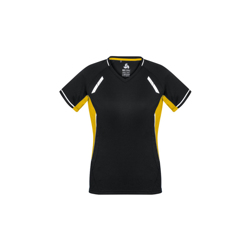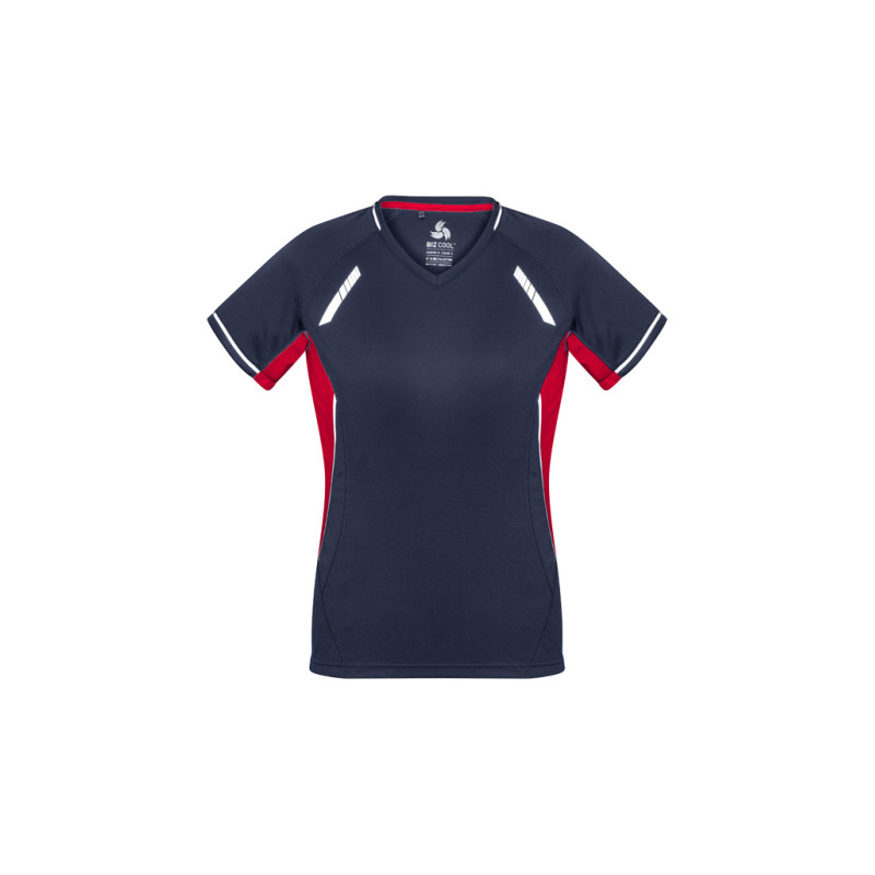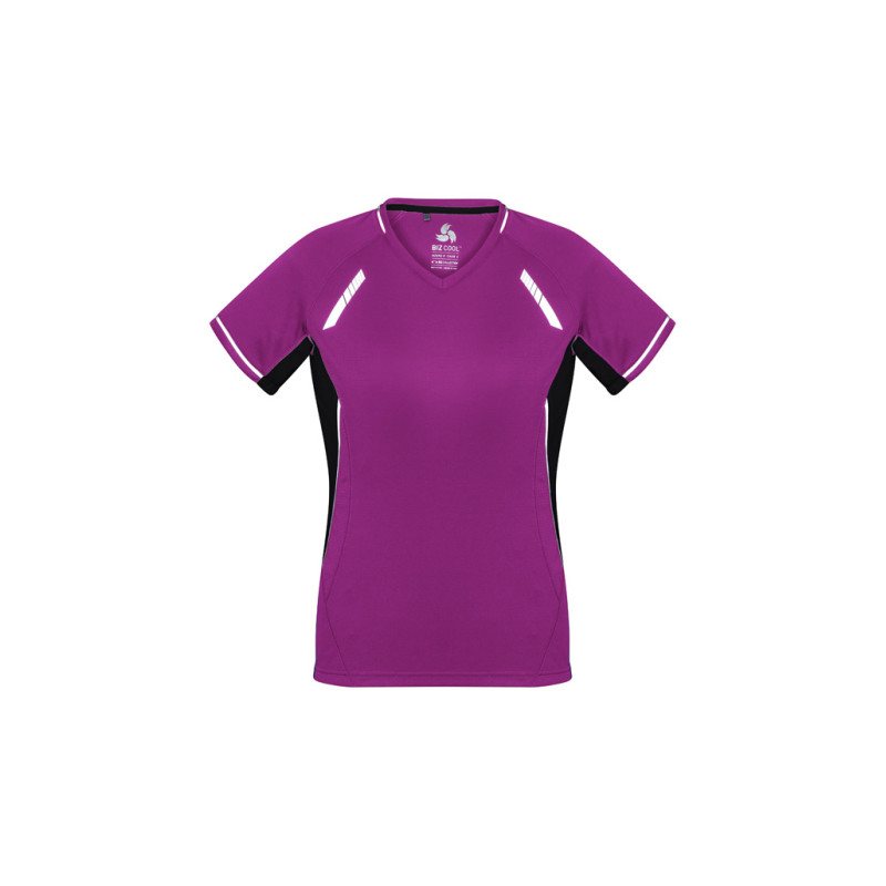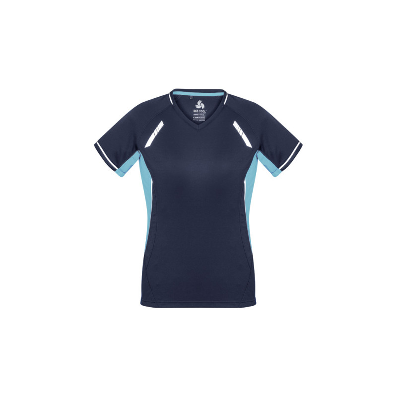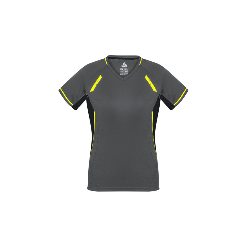Crew neck with self fabric,Durable flat lock raglan armhole. Fabric: BIZ COOL 100% Breathable Polyester,New generation mesh,145 GSM,UPF rating - Excellent.
