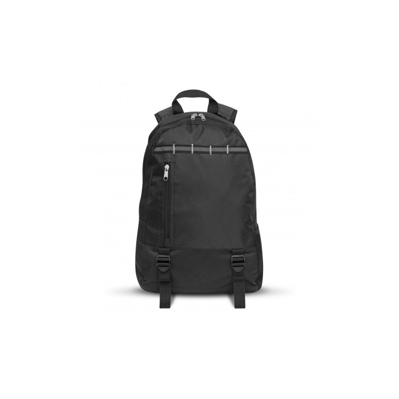 Premium 9L backpack which is manufactured from 900D Nylon Polyester. It has adjustable woven shoulder straps with black padding underneath, a top carry handle and a contrasting colour bottom with a zippered pocket. It is ideal for travelling or your daily commute with room for your daily essentials.
