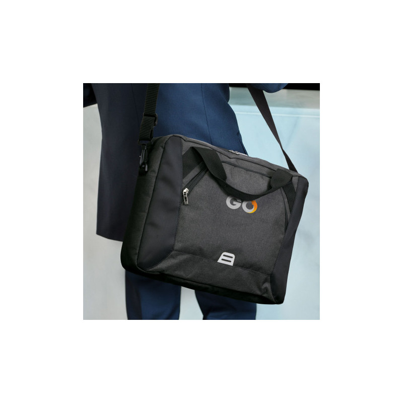 Handy laptop bag with padded internal compartments for both a laptop and a tablet and is manufactured from 300D two-tone polyester. It has multiple small internal pockets for daily business essentials. It has woven carry handles with a heather style cuff, and an adjustable woven padded shoulder strap.