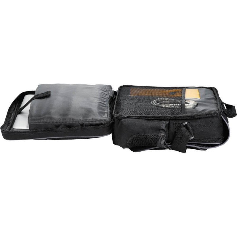 Made from 600D polycanvas. Open main compartment. Full organisation under velcro closure flap. Supplied with business card stitched on bag.