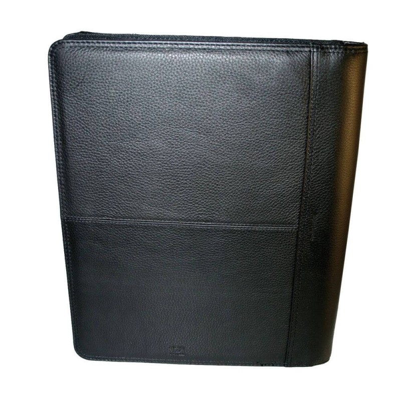 Zippered closure. Interior organiser with gusseted file pocket, business cards, calculator & front pockets.
