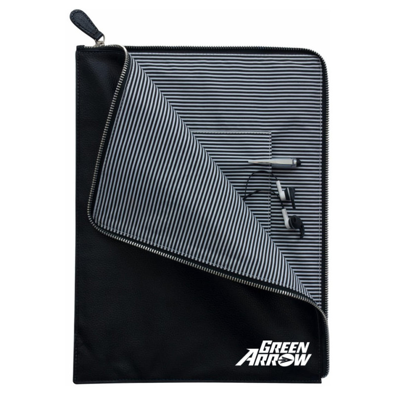 This quality bonded leather portfolio includes an outer zip closure to keep your documents and accessories safe and secure. It features quality bonded leather outer, micro-fibre and bonded leather inner, brushed silver accent plate, phone holder, USB/cable holders, note pad (30 pages), pen loop, internal security zip pocket, gusseted internal brochure...
