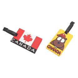 Luggage tag with black flexi PVC strap with moulded PVC 2D or 3D custom design on front. Back has black rigid plastic frame with clear window featuring removable paper label for contact details. Price includes up to 3 colour design plus base PVC colour, one side only.