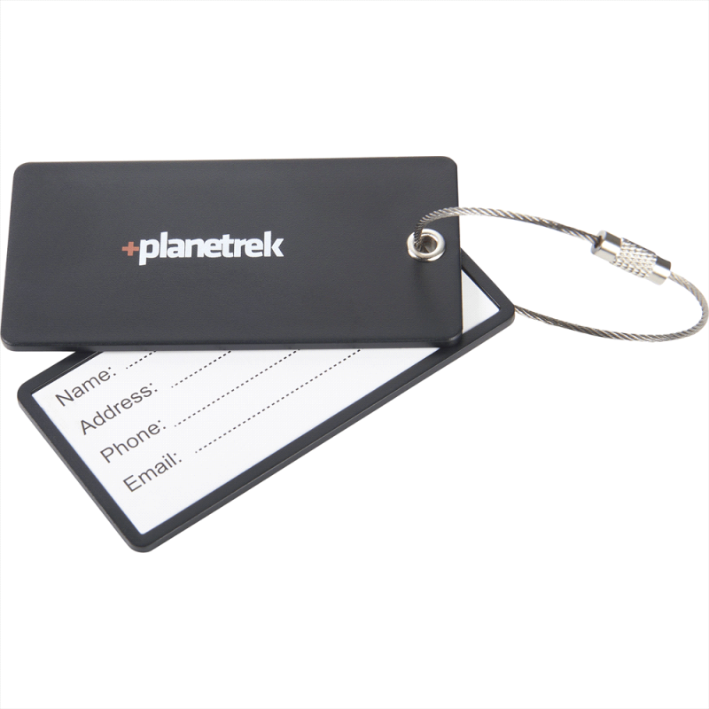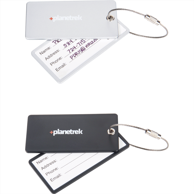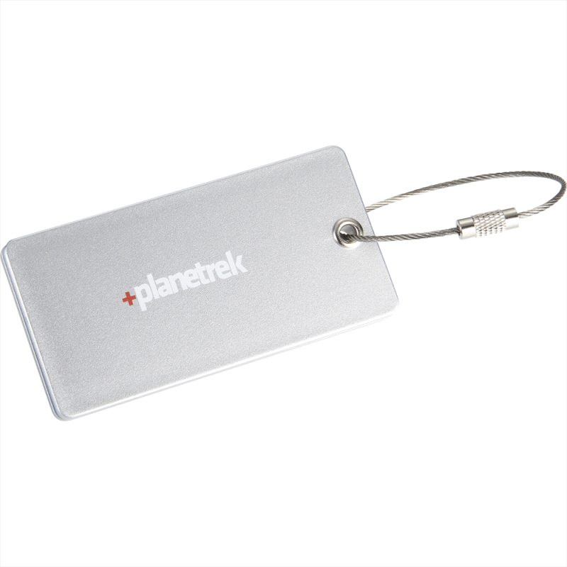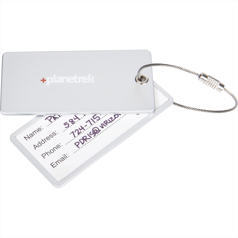 A light weight aluminium luggage tag. For a permanent imprint, this item is laser engraved.