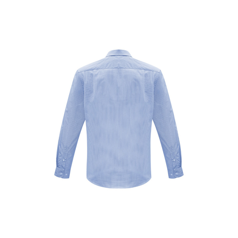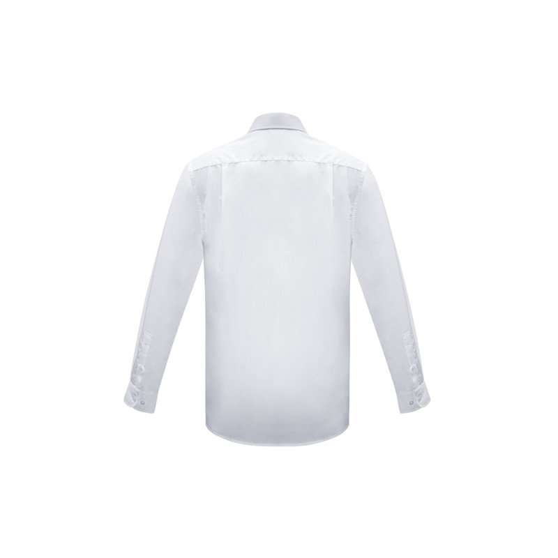 Standard collar with left chest pocket,Traditional business shirt fit with 2 back shoulder pleats. Fabric: 50% Cotton, 50% Polyester,Easy iron - yarn dyed fabric.