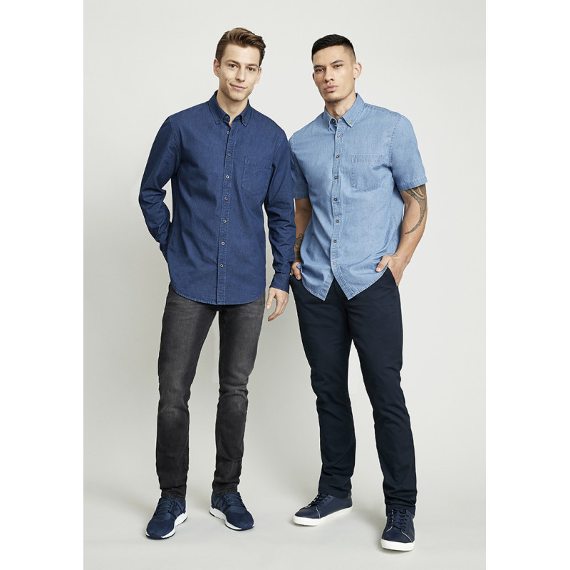 Easy-to-wear, softly stonewashed denim delivers the perfect casual lived-in look,Modern button-down collar, chest pocket and metal look buttons,Matching top-stitching details for durability and sleek appearance,Can be worn tucked in or out. Fabric: 100% Cotton,160 GSM,UPF Rating - Excellent.